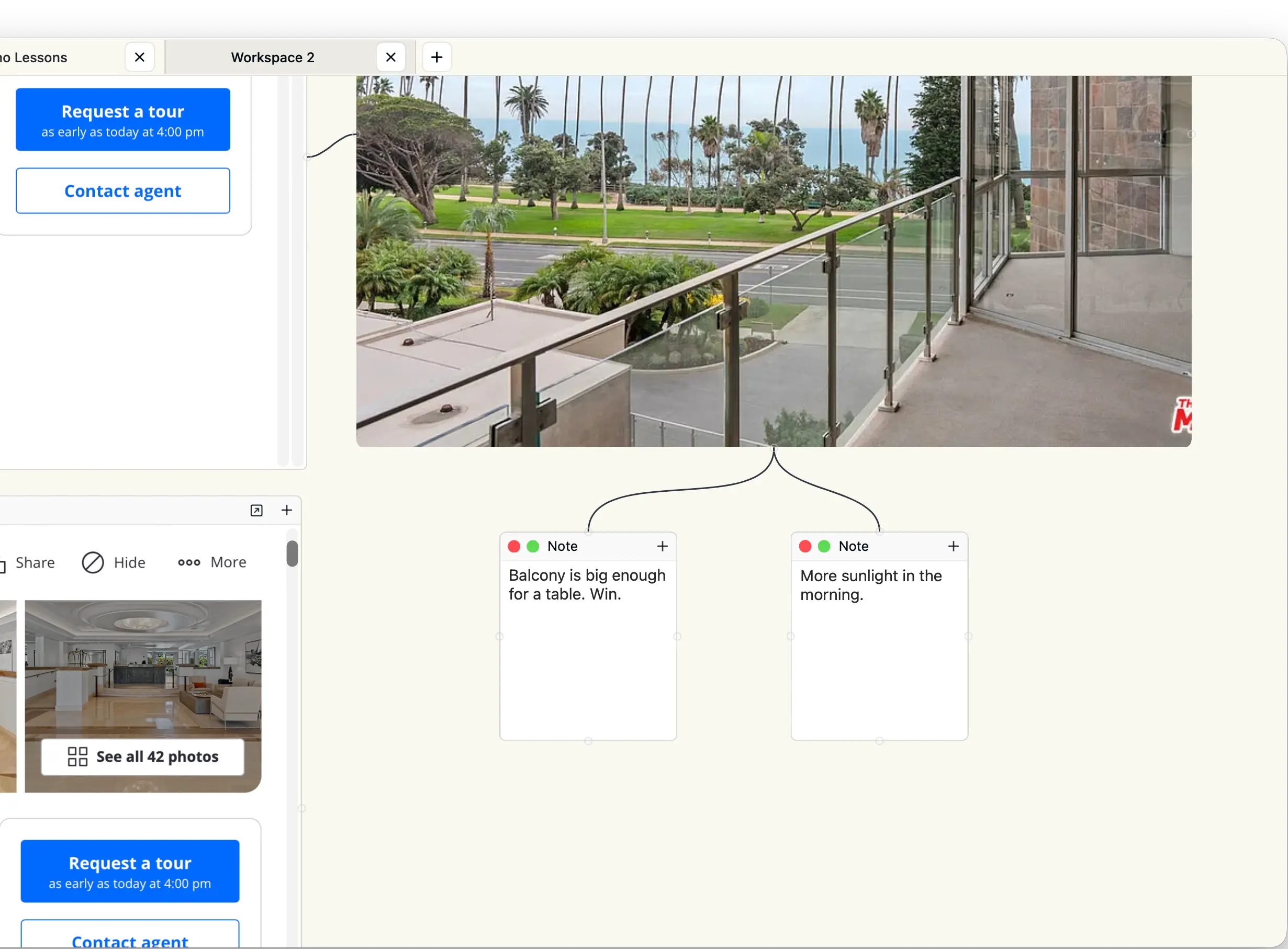 Place as many browsers, images, or documents as you need on a single, sprawling canvas